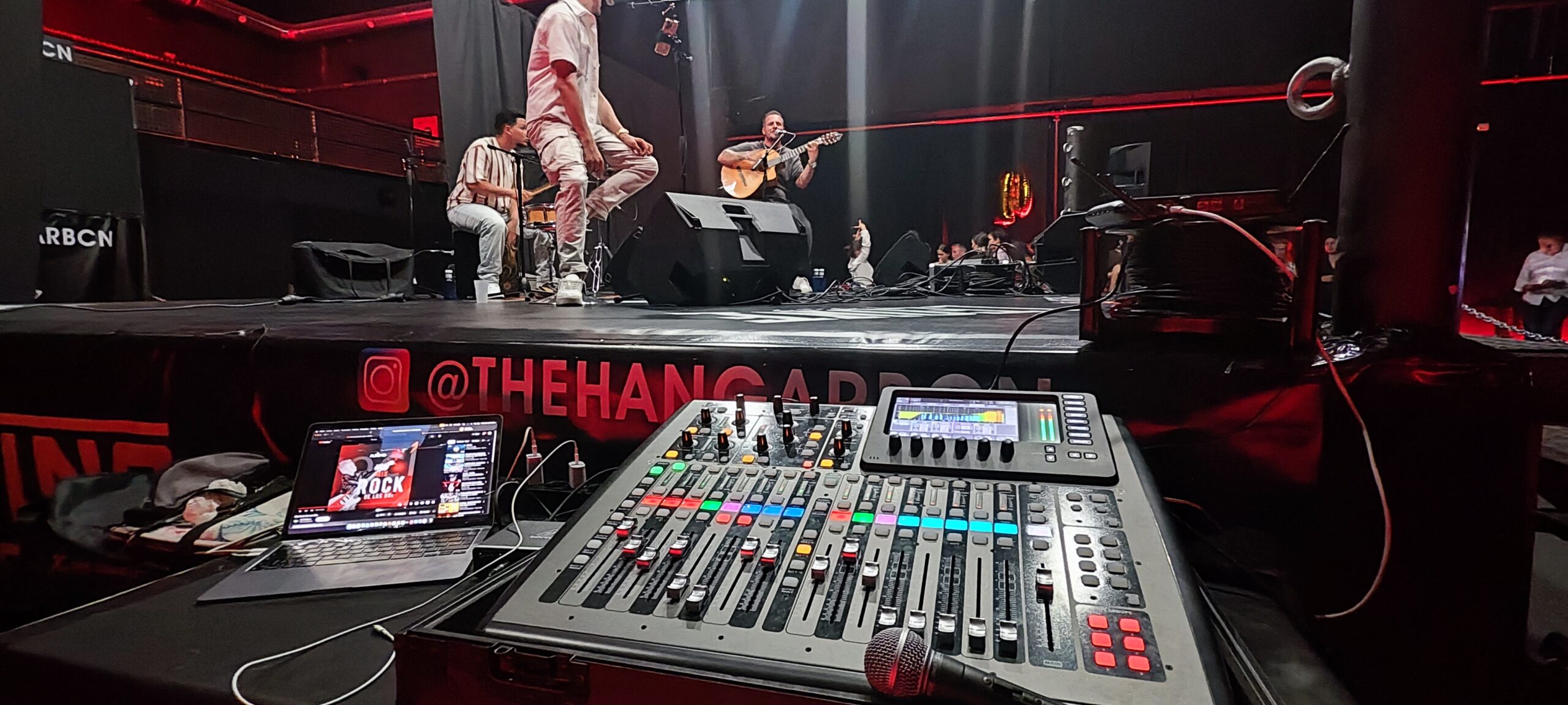 Mecànica de control de so adaptada al directe, amb taules de mescla i equalització en viu.